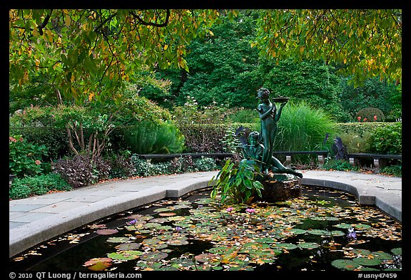 Pool and sculpture inspired by children South Garden. NYC, New York, USA