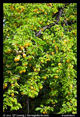 Branches of plum tree loaded with fruits. Hells Canyon National Recreation Area, Idaho and Oregon, USA
