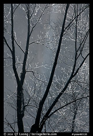 Bare branches and Bridalveil Fall. Yosemite National Park, California, USA.