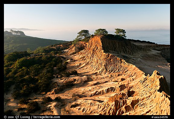 Eroded sandstone cliffs of Broken Hill, Torrey Pines State Preserve. La Jolla, San Diego, California, USA