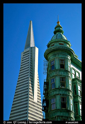Columbus Tower and Transamerica Pyramid. San Francisco, California, USA