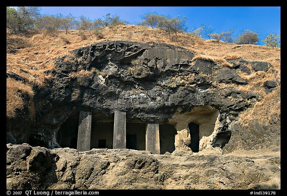 Rock-caved cave, Elephanta Island. Mumbai, Maharashtra, India