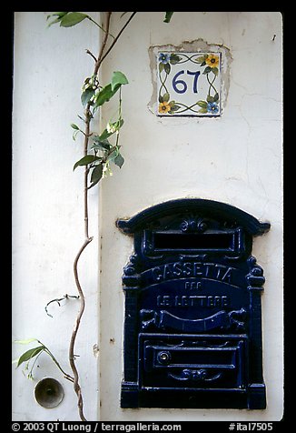 Mailbox and street number, Positano. Amalfi Coast, Campania, Italy