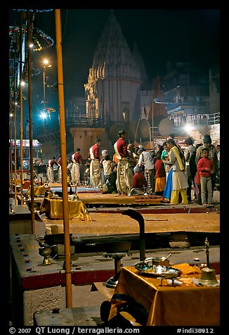 Pujari giving blessings at Dasaswamedh Ghat. Varanasi, Uttar Pradesh, India