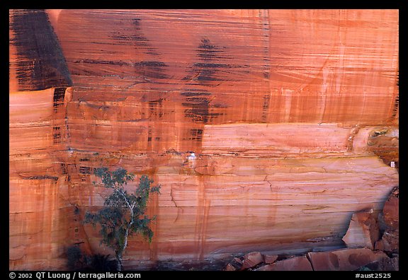 Rock wall striated with desert varnish in Kings Canyon, Watarrka National Park. Northern Territories, Australia