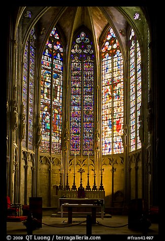 Altar and stained glass windows, Saint-Nazaire basilica. Carcassonne, France