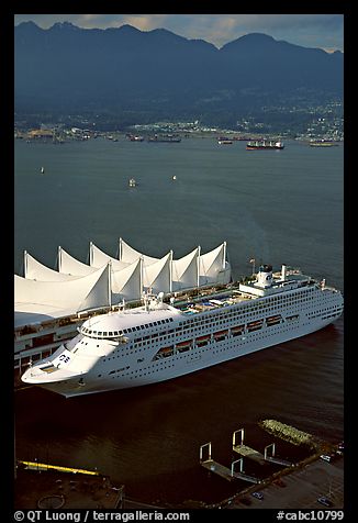 Canada Place, cruise ship, and Burrard Inlet. Vancouver, British Columbia, Canada