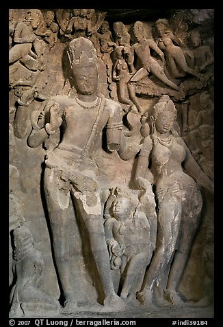 Gangadhara (descent of the Ganges) sculpture, main Elephanta cave. Mumbai, Maharashtra, India