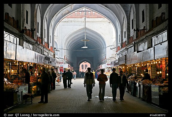 Shops in Chatta Chowk (Covered Bazar), Red Fort. New Delhi, India
