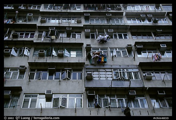 Detail of high-rise residential building in a popular district, Kowloon. Hong-Kong, China