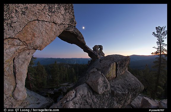 Indian Arch and moon at dusk. Yosemite National Park, California, USA.