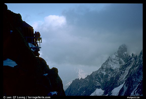 Hut at the base of the Kuffner ridge, Mt Maudit, Italy and France.