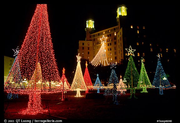Christmas illuminations in front of the Arlington Hotel. Hot Springs, Arkansas, USA