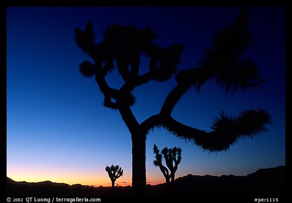 Joshua Trees silhouette at sunset. Joshua Tree National Park, California, USA.