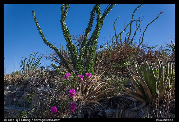 Flowering cactus and ocotillos. Carlsbad Caverns National Park, New Mexico, USA.