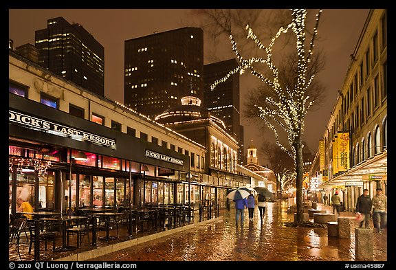 Rainy evening, Faneuil Hall marketplace. Boston, Massachussets, USA