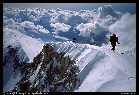 Mountaineers climb West Buttress of Mt McKinley. Denali National Park, Alaska, USA.