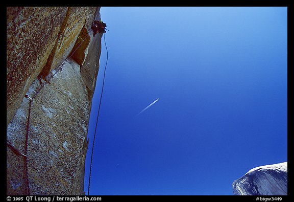 Leading the long 6th pitch. Washington Column, Yosemite, California