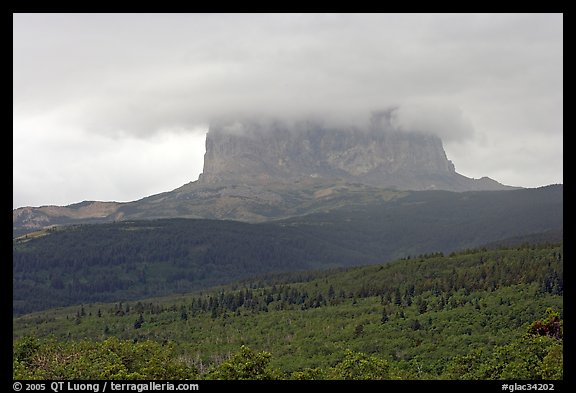 Chief Mountain, with top in the clouds. Glacier National Park, Montana, USA.