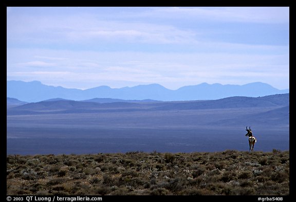 Desert antelope and hazy mountain range. Great Basin National Park, Nevada, USA.