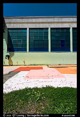 Sidewalk and industrial building facade. Berkeley, California, USA