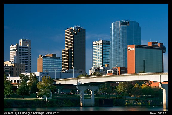 Bridge and Downtown high rises, early morning. Little Rock, Arkansas, USA