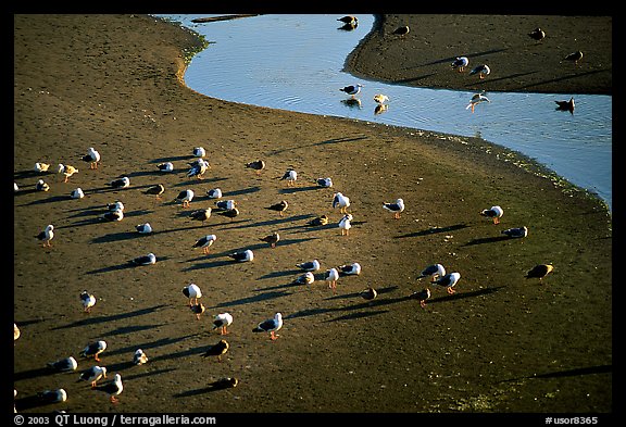 Seabirds and stream on beach. Oregon, USA