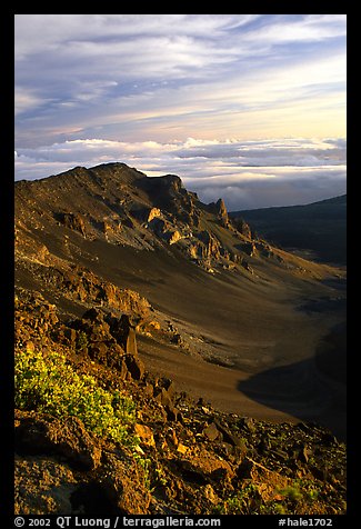 Crater rim and clouds at sunrise. Haleakala National Park, Hawaii, USA.