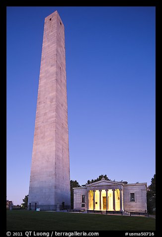 Bunker Hill Monument and exhibit lodge at dawn, Charlestown. Boston, Massachussets, USA