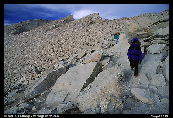 Hiking down Mt Whitney in cold conditions. Sequoia National Park, California