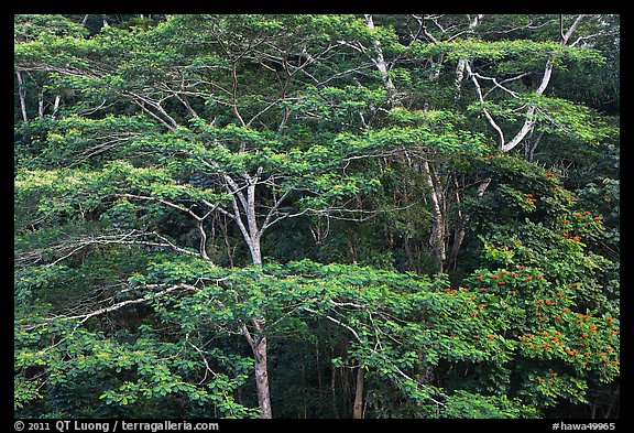 White Siris branches and leaves. Kauai island, Hawaii, USA