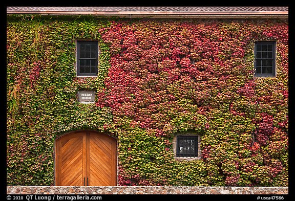 Facade covered with ivy in fall, Hess Collection winery. Napa Valley, California, USA