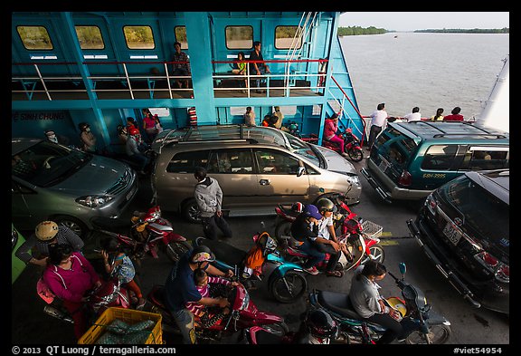 Abord ferry across the Mekong River. Mekong Delta, Vietnam