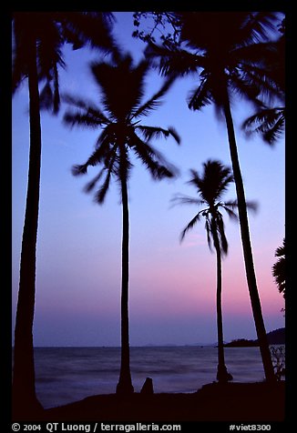Palm trees swaying in the breeze at sunset. Hong Chong Peninsula, Vietnam