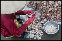 Mui Ne sand dunes, town in the distance. Mui Ne, Vietnam ( color) Woman on top of red sand dunes. Mui Ne, Vietnam ( color) Typical vietnamese figure on Mui Ne dunes. Mui Ne, Vietnam ( color) Coastal sand dunes with sea in distance and local woman. Mui Ne, Vietnam ( color) Suoi Tien canyon. Mui Ne, Vietnam ( color) Fairy Stream Canyon. Mui Ne, Vietnam ( color) Waterfall detail, Fairy Stream. Mui Ne, Vietnam ( color) Po Shanu Cham temple complex. Mui Ne, Vietnam ( color) Rows of fish sauce vats. Mui Ne, Vietnam ( color) Woman with conical hat sitting above fishing fleet. Mui Ne, Vietnam ( color) Fishing boats and village. Mui Ne, Vietnam ( color) Hawkers gather on mirror-like beach in early morning. Mui Ne, Vietnam ( color) Women gather on beach to collect freshly caught fish. Mui Ne, Vietnam ( color) Bullock cart on fishing beach. Mui Ne, Vietnam ( color) Shells packed for sale on beach, Lang Chai. Mui Ne, Vietnam ( color) Women processing shells on beach. Mui Ne, Vietnam ( color) Woman extracting meat from scallops. Mui Ne, Vietnam ( color) Men use round woven boats to disembark from fishing boats. Mui Ne, Vietnam ( color) Fishermen lining up to pull net onto beach. Mui Ne, Vietnam ( color) Fishermen folding net out of coracle boat as children watch. Mui Ne, Vietnam ( color) Fishermen on boats at sunset. Mui Ne, Vietnam ( color) Man working on coracle boat at night. Mui Ne, Vietnam ( color) Palm-tree lined beach and coracle boats at night. Mui Ne, Vietnam ( color) Fisherman paddling on coracle boat towards fishing boats at moonset. Mui Ne, Vietnam ( color)